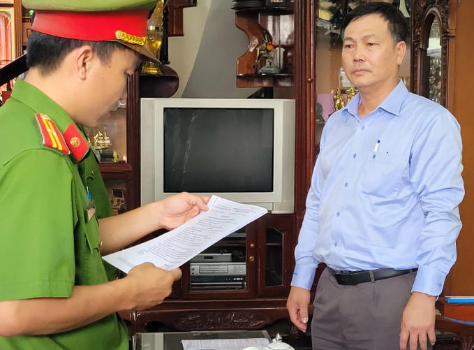 Bị can Phan Thanh Vĩnh Toàn nghe cảnh sát đọc lệnh bắt. Ảnh: Phước Tuấn