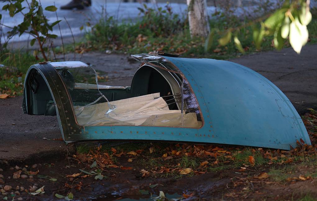 Một mảnh vỡ của máy bay tại hiện trường. Ảnh: TASS