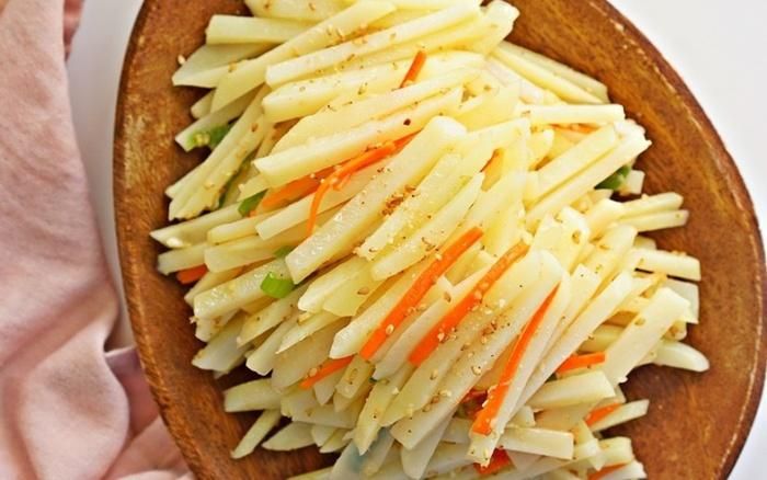 Vào mùa thu đông, món khoai tây xào thường được nhiều gia đình yêu thích. Có nhiều cách làm món khoai tây xào khác nhau. Tuy nhiên cách xào khoai tây của người Hàn có chút khác biệt so với cách xào thông thường của người Việt. Khoai tây sau khi xào thì chín tới, thấm đều gia vị, khoai khá mềm mà không bị bở nát, rất ngon và khá lạ miệng.