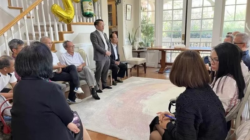 Ông Ngô Trịnh Hà, Phó chủ nhiệm Ủy ban nhà nước về người Việt Nam ở nước ngoài, phát biểu trước nhóm khách TS Nguyễn Hữu Liêm mời tới nhà ở San Jose