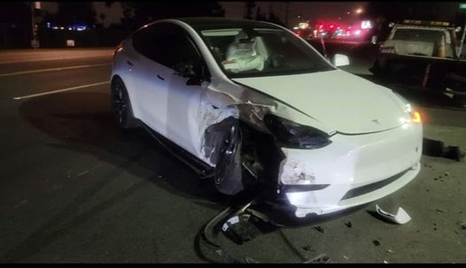 Chiếc xe Tesla tan tác sau khi gặp tai nạn. Ảnh: Jason Do