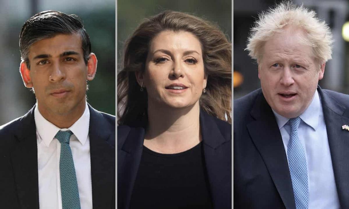 Từ trái sang: Ông Rishi Sunak, bà Penny Mordaunt và ông Boris Johnson. (Ảnh: The Guardian)