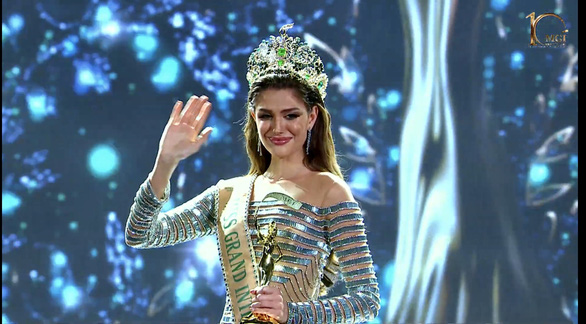 Nguyễn Thúc Thùy Tiên trao vương miện hoa hậu cho Isabella Menin đến từ Brazil - Ảnh chụp màn hình