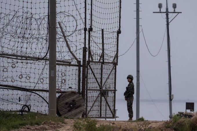 Một binh sĩ Hàn Quốc gác tại Khu phi quân sự liên Triều, gần Ganghwa (Ảnh: AFP).