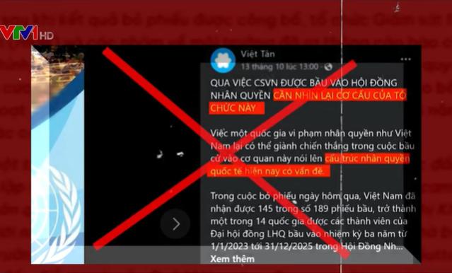 Những bài viết này đăng ngay sau khi Việt Nam trúng cử Hội đồng Nhân quyền mới đây. Trích dẫn những báo cáo thiếu thực tế, thiếu khách quan về tình hình nhân quyền ở Việt Nam, có bài viết thậm chí xuyên tạc vô lối, cố tình bôi nhọ lá phiếu của đa số cộng đồng quốc tế ủng hộ Việt Nam tham gia Hội đồng Nhân quyền. Tổ chức phản động Việt Tân còn ngang ngược đòi xem lại cả cơ cấu Hội đồng Nhân quyền.