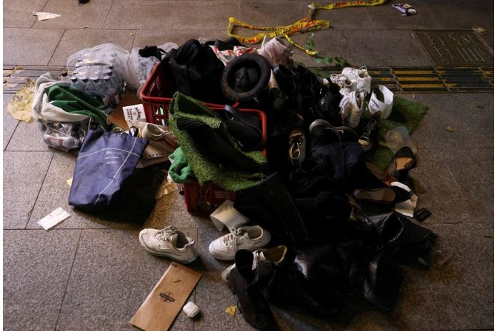 Giày dép bị bỏ lại sau vụ giẫm đạp tại lễ hội Halloween ở Itaewon. Ảnh: Reuters.