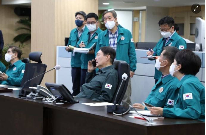Tổng thống Hàn Quốc Yoon Suk Yeol đă tới văn pḥng tổng thống và thành lập đội ứng phó khẩn cấp để điều tra về vụ việc.