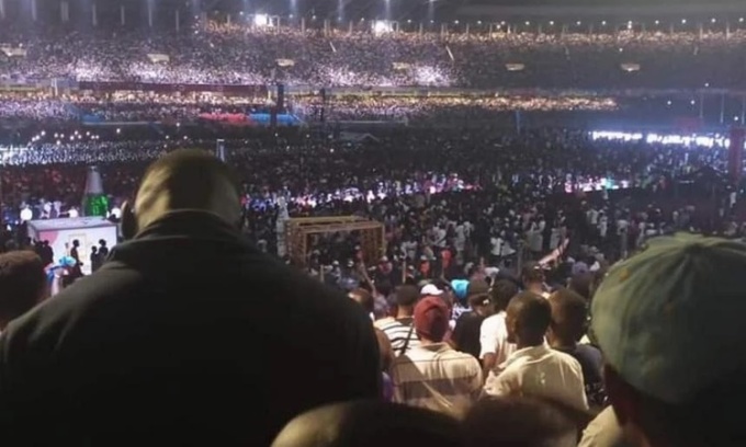 Các khán giả có mặt tại sân vận động Martyrs, thủ đô Kinshasa, Congo, tối 29/10 để theo dõi buổi hòa nhạc của ca sĩ Fally Ipupa. Ảnh: Twitter/KulunaMusic.