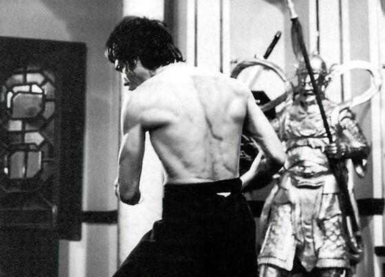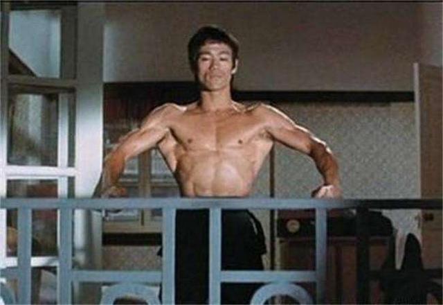 Nhìn về phía mặt sau lưng của Lý Tiểu Long, tuy không rõ ràng lắm nhưng chúng ta vẫn có thể thấy từng múi cơ bắp vạm vỡ xếp thành hình cây thông.