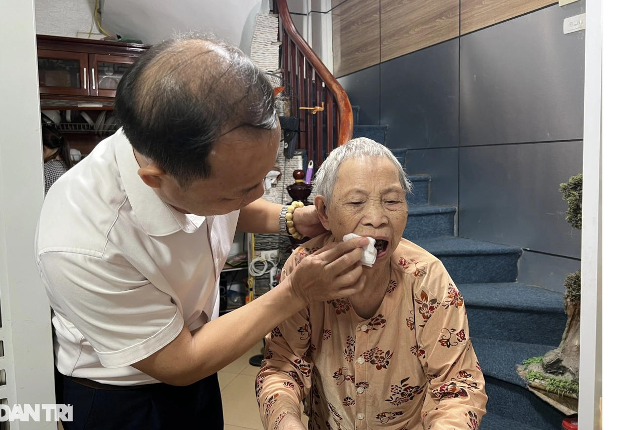 Ông Hương kể, do ảnh hưởng của bệnh tật nên nhiều lúc cụ bà giống như một đứa trẻ 4-5 tuổi, luôn muốn ở bên cạnh những người mình yêu thương nhất.
