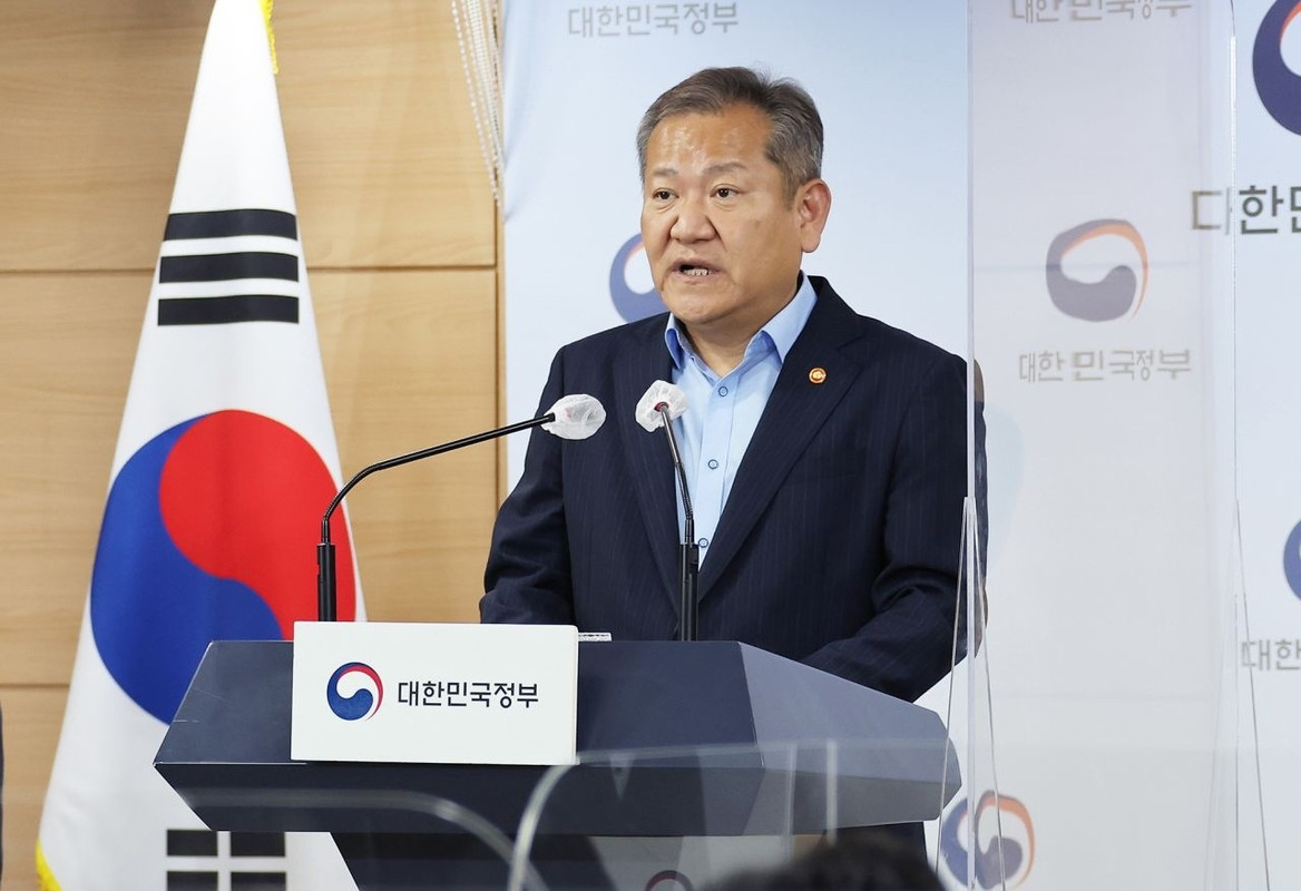 Ông Lee Sang Min, Bộ trưởng Nội vụ và An toàn Hàn Quốc, phát biểu trong một cuộc họp báo trước đó. Ảnh: Yonhap.
