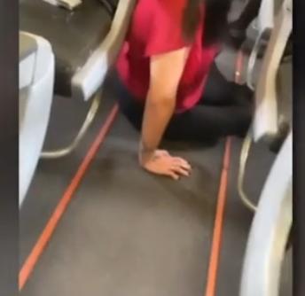 Old  Default Nữ hành khách phải bò xuống máy bay