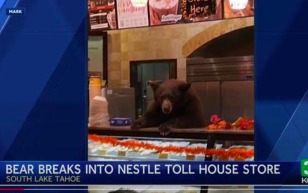 Một nhân viên ở quán cà phê Nestle Toll House Café tại Heavenly Village, South Lake Tahoe - Mỹ đã chụp hình và quay video cảnh một chú gấu mò vào tiệm vào khoảng 7 giờ tối hôm 2-11 vừa qua.