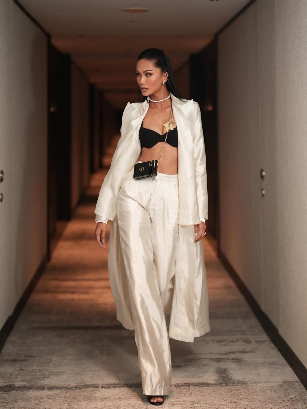 Mỹ nhân gốc Ê Đê trang điểm tông màu nude tinh tế, diện mốt khoe nội y và đeo phụ kiện sang chảnh xuất hiện tại sự kiện, thu hút mọi ánh nhìn.