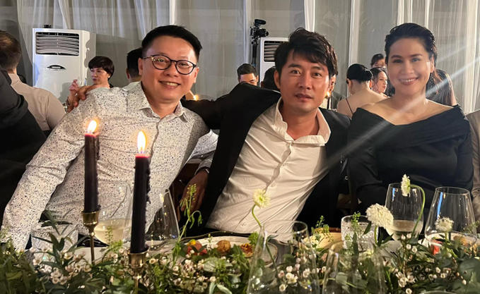 Diễn viên Thân Thúy Hà, Khôi Trần (từ phải sang) tới chúc mừng Hà Tăng. Ảnh: Khôi Trần