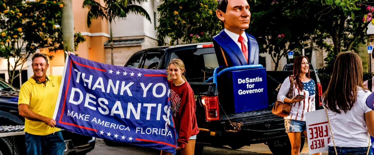 Những người ủng hộ Thống đốc Ron DeSantis của Florida đã tụ tập tại một sự kiện vận động ở Coconut Creek hôm 4/11. Ảnh: New York Times.