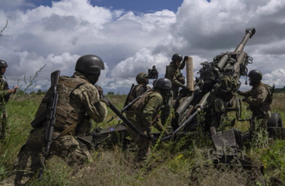 Các binh sĩ Ukraine chuẩn bị khai hỏa vào các vị trí của Nga bằng lựu pháo M777 do Mỹ cung cấp ở khu vực Kharkov vào ngày 14/7. Ảnh AP