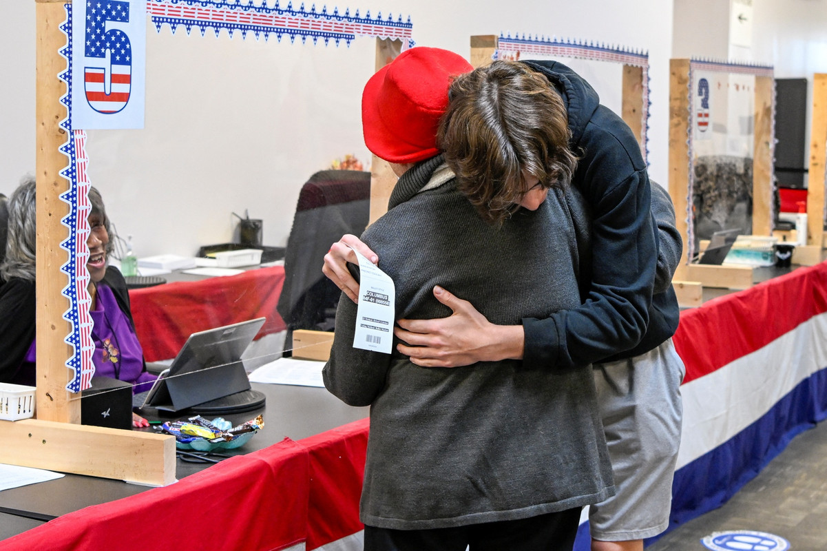 Một cử tri trẻ tuổi xúc động trong lần đầu tiên được tham gia bỏ phiếu tại bang Ohio hôm 1/11. Ảnh: Reuters.