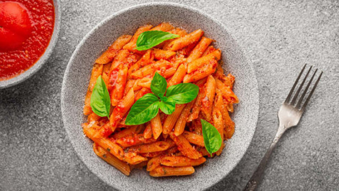 Arrabbiata trong tiếng Italy nghĩa là "tức giận". Và penne all'arrabbiata là món mì ống penne kết hợp với hương vị cay xé lưỡi từ nước sốt cà chua cay, làm từ tỏi và và ớt đỏ. Để làm dịu vị cay, người dân thường ăn món này kèm một ly vang đỏ. Ảnh: Adobe Stock