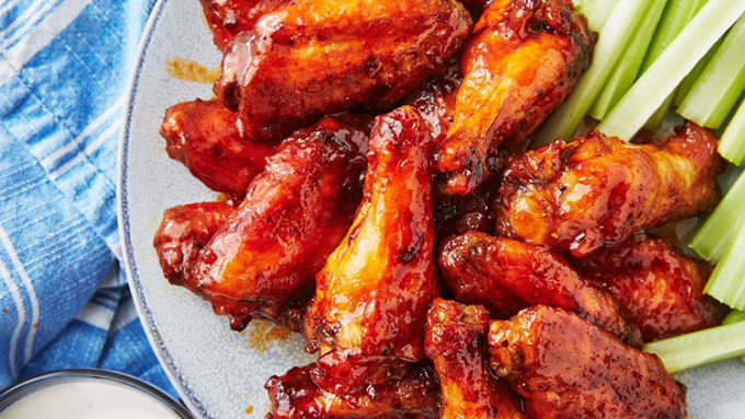 Đây là một món ăn được ưa chuộng ở Mỹ, gồm cánh gà đươc chiên giòn rồi phủ lên trên một loại nước sốt, trong đó có sốt ớt cayenne, bơ tan chảy, bột tỏi, giấm... Ảnh: Delish