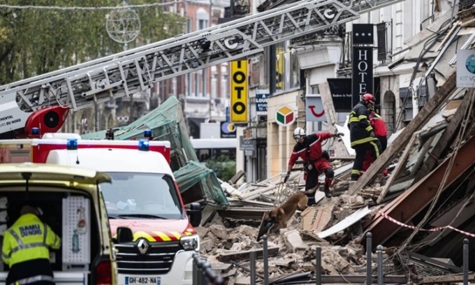 Lực lượng cứu hộ tại hiện trường tòa nhà bị sập ở trung tâm thành phố Lille, phía bắc Pháp, ngày 12/11. Ảnh: AFP.