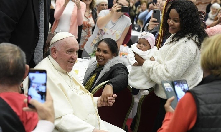 Giáo hoàng Francis, người đang phải ngồi xe lăn và chống gậy vì bị bệnh đau đầu gối, đã cùng dùng bữa trưa với những người nghèo và người vô gia cư trong một hội trường lớn ở Vatican. Bữa ăn được phục vụ bởi các tình nguyện viên.