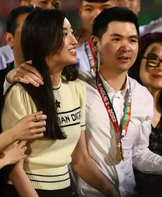 Khoảnh khắc CLB Hà Nội đăng quang chức vô địch V-League 2022, nàng Hậu xuống sân chia vui cùng đội bóng do ông xã Đỗ Vinh Quang làm chủ tịch.