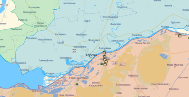 Lực lượng Nga đang di chuyển vào đất liền 15-20 km từ biên giới được xây dựng của họ ở tả ngạn sông Dnipro ở Kherson để tránh các cuộc tấn công của Lực lượng Vũ trang Ukraine.