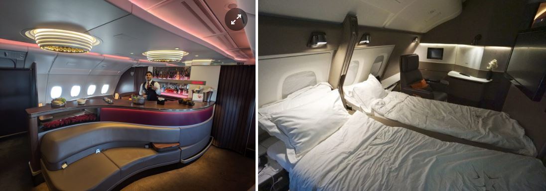 Các hãng hàng không đổ xô mua A380 làm mẫu máy bay cao cấp. Hãng Emirates, Etihad, Qatar Airways và Qantas đã cho lắp thêm quầy bar, trong khi Singapore Airlines có giường rộng cho các cặp đôi. Emirates và Etihad cung cấp dịch vụ phòng tắm cho khách bay hạng nhất.