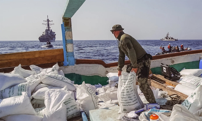 Hải quân Mỹ ngày 15/11 thông báo tàu tuần duyên USCGC John Scheuerman và khu trục hạm USS The Sullivans chặn một thuyền buồm gỗ trên vịnh Oman hôm 8/11, khi nó đang trên đường từ Iran tới Yemen.
