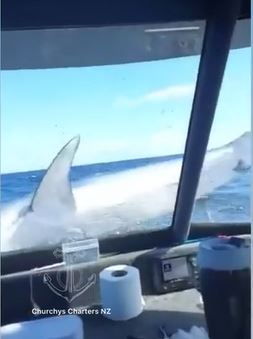 Một thủy thủ ở New Zealand và những khách hàng trên tàu kể lại câu chuyện kỳ ​​lạ hiếm có trong tự nhiên về vụ tấn công của cá mập lớn.