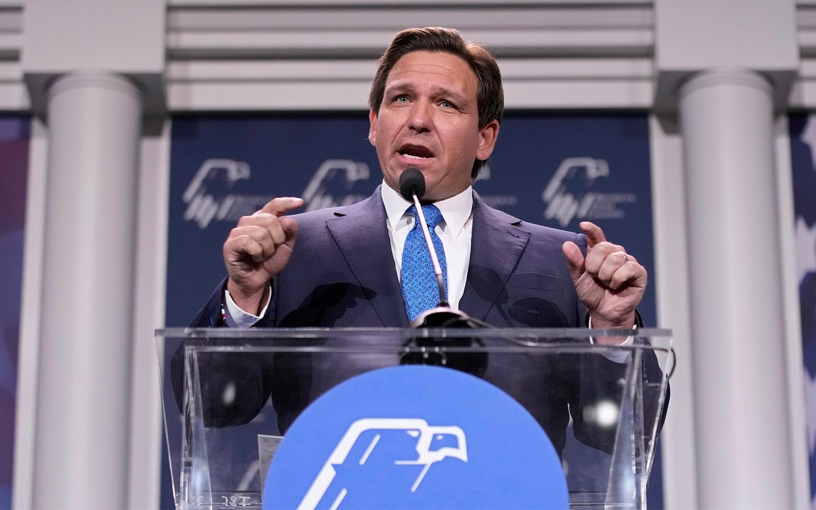 Thống đốc Florida Ron DeSantis phát biểu tại sự kiện hôm 19/11. Ảnh: Reuters.