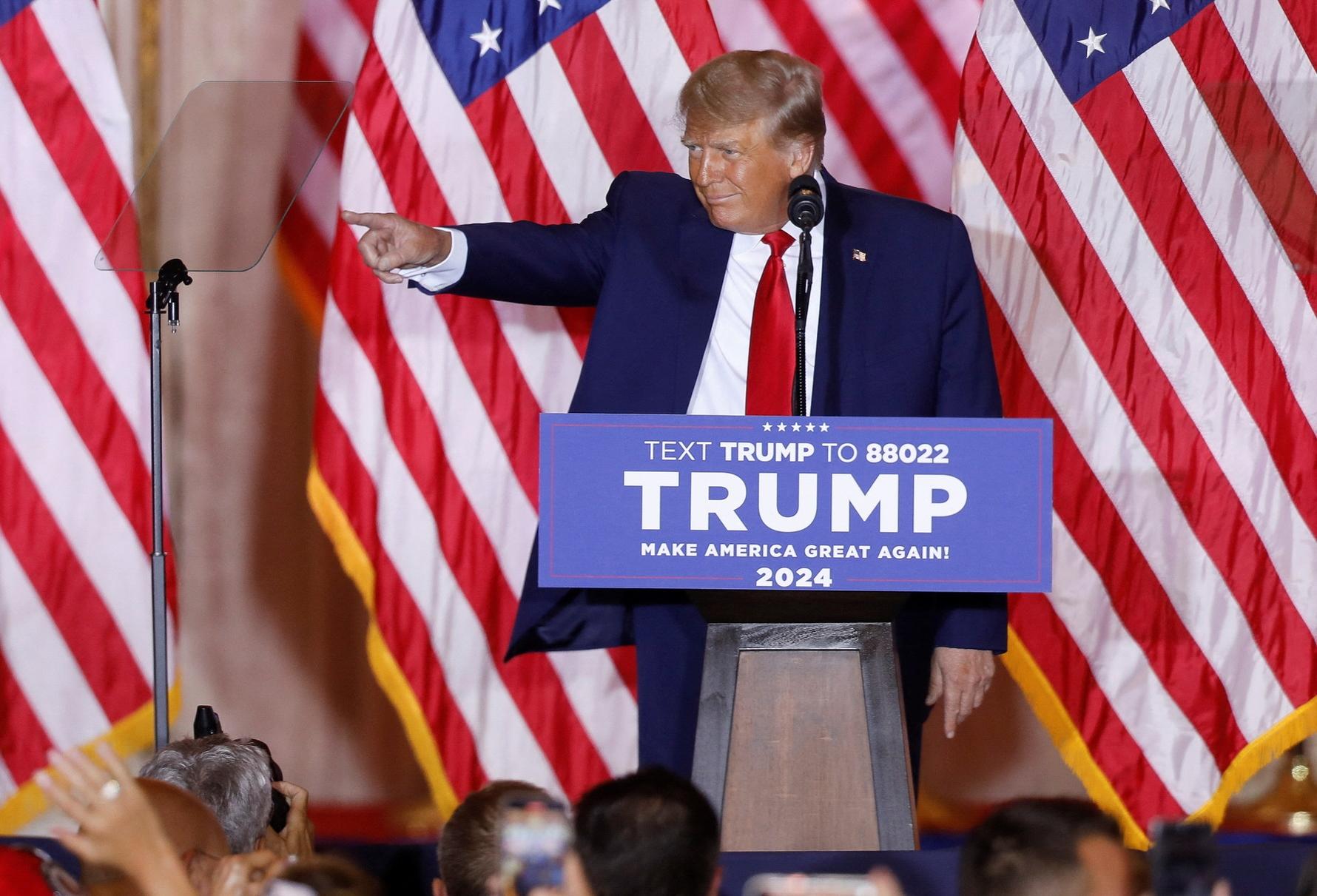Ông Trump tuyên bố tái tranh cử hôm 15/11 tại dinh thự Mar-a-Lago. Ảnh: Reuters.