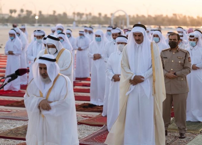 Quốc vương Tamim bin Hamad Al-Thani chuẩn bị cầu nguyện cùng người dân tại khu Al Wajba hồi năm 2020. Ảnh: Peninsula.