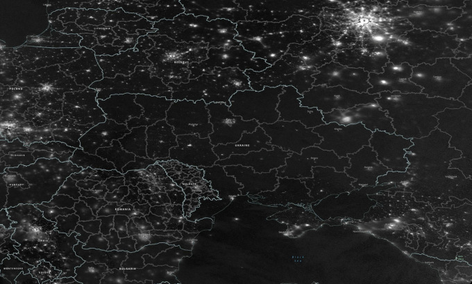 Chỉ có một số khu vực sáng đèn như thủ đô Kiev và thành phố Lviv, Zhytomyr ở miền tây và Odessa ở miền nam, nhưng độ sáng cũng giảm đi nhiều lần so với trước chiến sự. Gần như không còn điểm sáng nào ở miền đông Ukraine, nơi giao tranh diễn ra dữ dội.