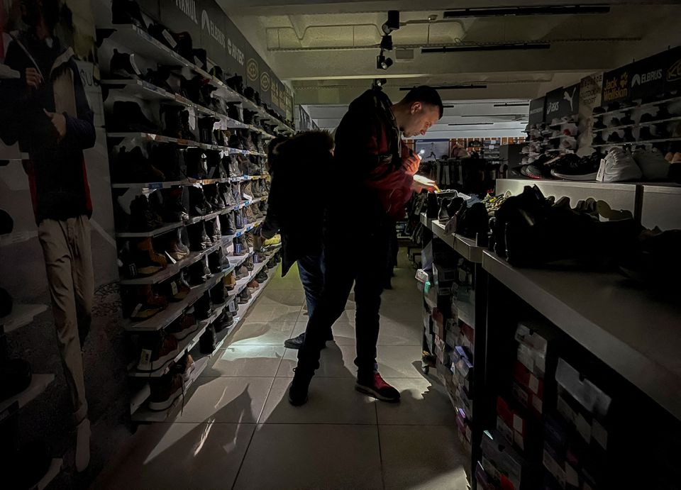 Cư dân ở Kiev chọn mua hàng trong điều kiện mất điện. Ảnh: Reuters