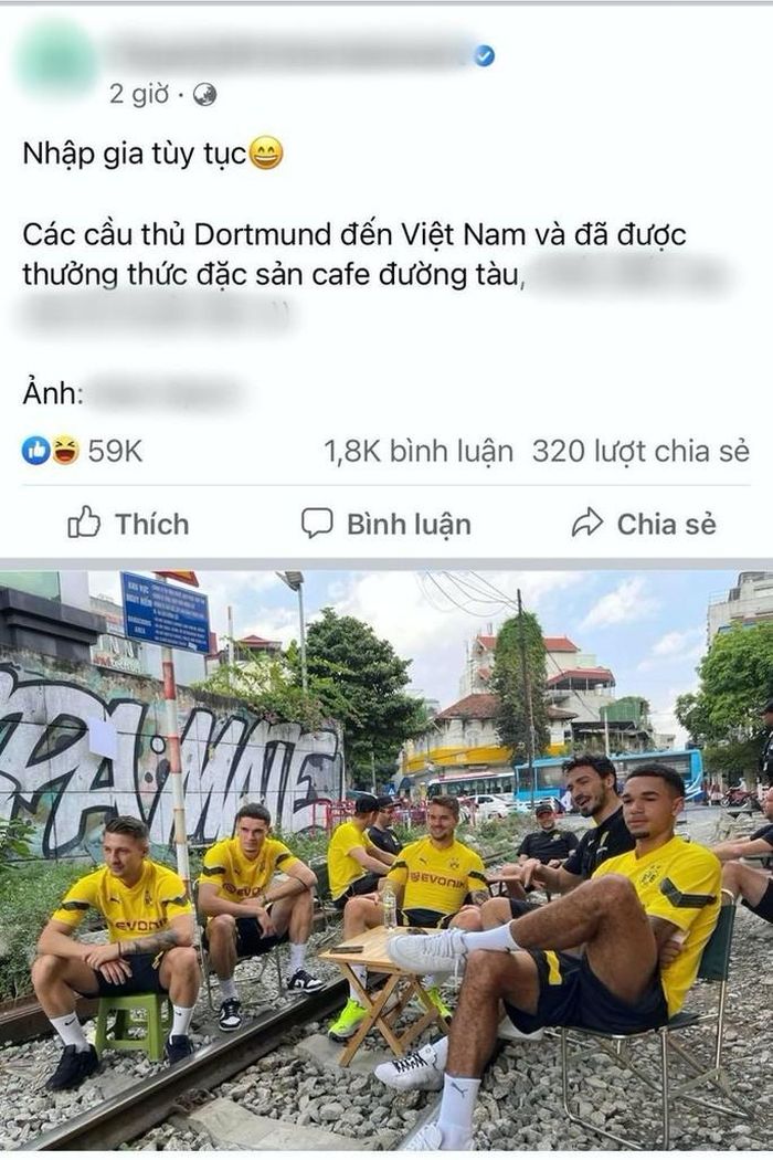 Trước đó, ngày 29-11, CLB Borussia Dortmund đến Việt Nam, chuẩn bị cho trận đá giao hữu với đội tuyển Việt Nam vào ngày 30-11. Từ mạng xã hội lan truyền hình ảnh một số cầu thủ CLB Borussia Dortmund đang ngồi trên phố "cà phê đường tàu" trên địa bàn quận Hoàn Kiếm, TP Hà Nội.