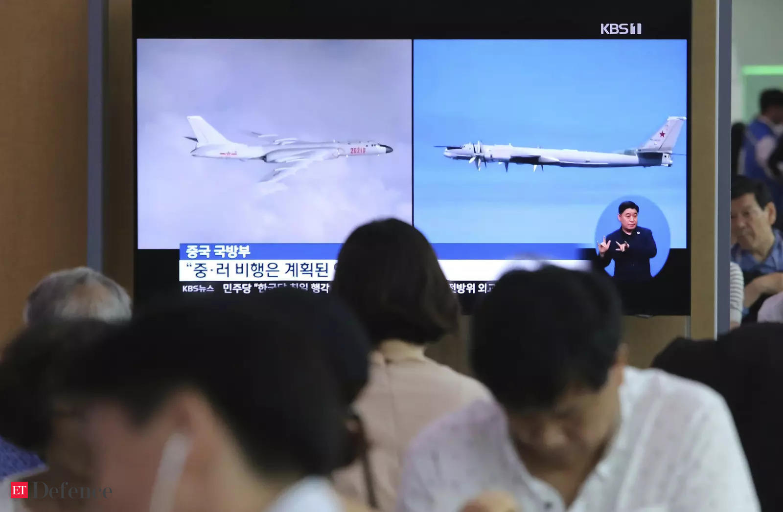 Hình ảnh máy bay ném bom Tu-95 của Nga và máy bay ném bom H-6 của Trung Quốc trong một chương trình tin tức tại ga xe lửa Seoul ở Seoul, Hàn Quốc, ngày 24-7 - Ảnh: AP