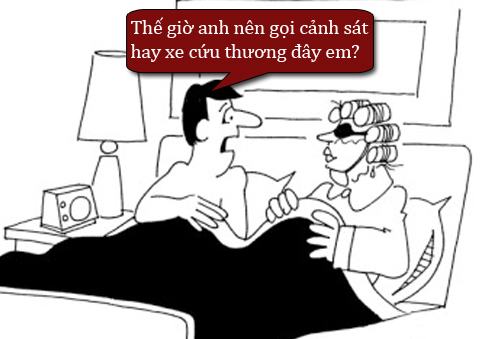 - Thế giờ anh nên gọi cảnh sát hay xe cứu thương đến trước đây em?