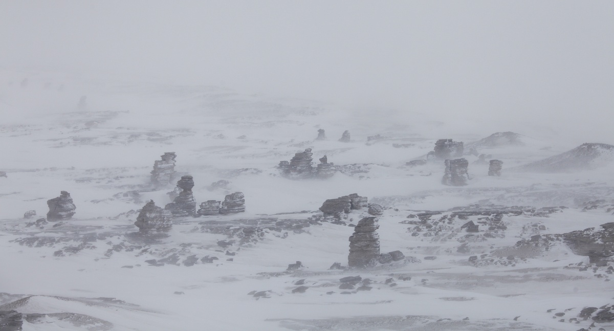Các cột đá tại quần đảo Severnaya Zemlya, Nga nhìn từ trên cao. Ảnh: Getty.