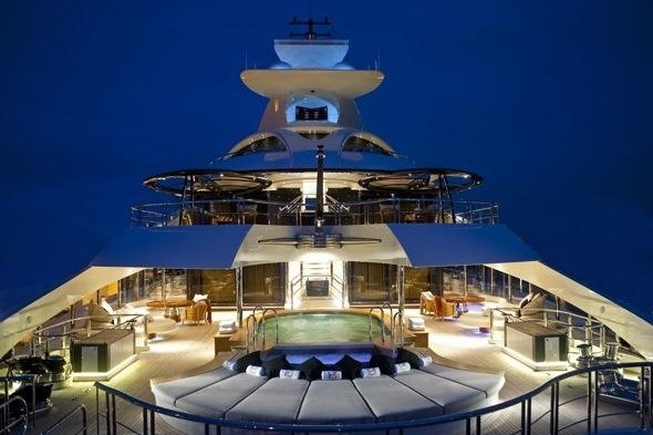 Con tàu trị giá 400 triệu USD nổi tiếng vì sự riêng tư bí ẩn, khi hiếm có hình ảnh chụp cận các không gian sinh hoạt ngoài trời trên boong. Nhiều người tin rằng hệ thống hồ bơi đa phần được xây dựng trong nhà nhằm tăng tính bảo mật. Ảnh: Yacht Harbour.