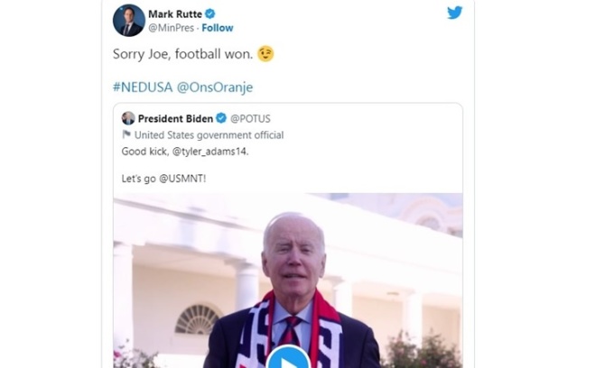 Lời trêu chọc của Thủ tướng Hà Lan bắt nguồn từ việc Tổng thống Mỹ Biden đã đăng một đoạn clip trước trận đấu lên Twitter, trong đó ông cổ vũ đội tuyển nước nhà và dùng từ "soccer" để nói về môn thể thao này.