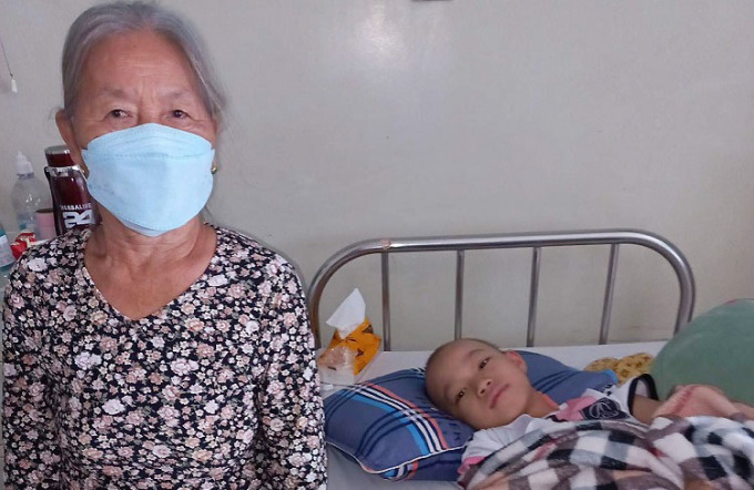 Bà Lẫm chăm cháu tại bệnh viện Ung Bướu Đà Nẵng, hôm 26/11. Ảnh nhân vật cung cấp
