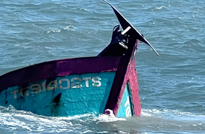 Con tàu gặp nạn chìm chỉ còn nổi phần mũi. Ảnh: Cảng vụ Hàng hải Vũng Tàu