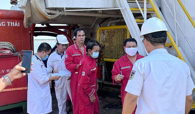 Các ngư dân trên tàu cá Tiền Giang khi được cứu. Ảnh: Cảng vụ Hàng hải Vũng Tàu