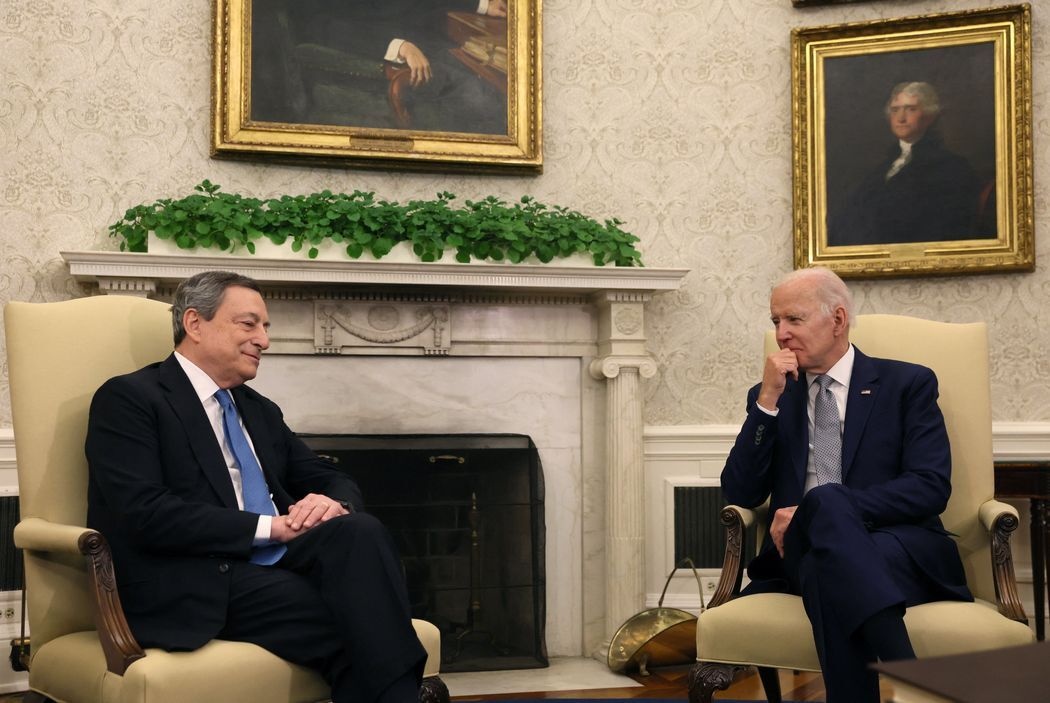Mario Draghi, khi đó là thủ tướng Italy, gặp Tổng thống Biden tại Nhà Trắng vào tháng 5. Ảnh: Reuters.