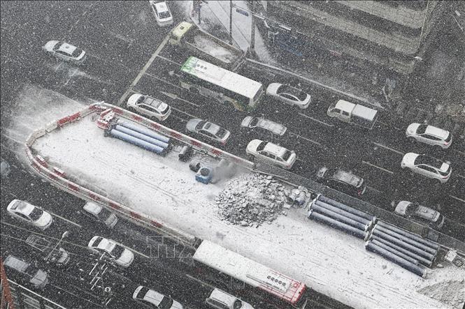 Tuyết rơi dày ở thành phố Gwangju, miền Nam Seoul, Hàn Quốc, ngày 17/12/2022. Ảnh: YONHAP