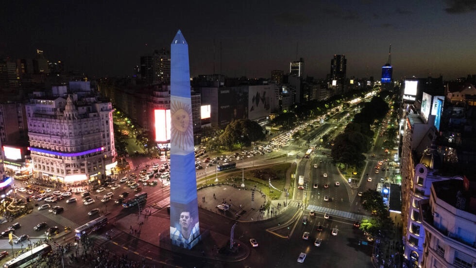 Quảng trường trung tâm thủ đô Buenos Aires, ngày 17/12/2022, đã chuẩn bị sẵn sàng để mở hội ăn mừng khi đội tuyển Achentina giành ngôi vô địch thế giới tại World Cup Qatar 2022. AP - Rodrigo Abd
