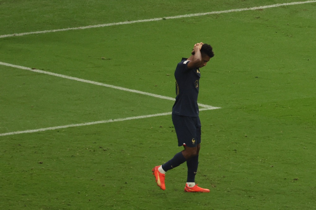 Kingsley Coman ôm đầu sau khi đá hỏng penalty trong trận chung kết World Cup 2022 hôm 18/12. Ảnh: AFP.