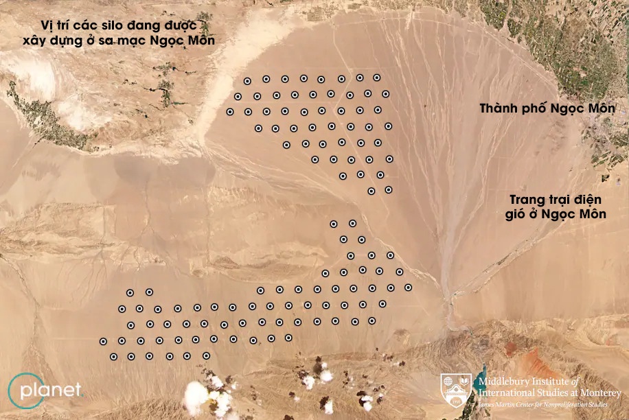 Hình ảnh vệ tinh thương mại được các chuyên gia tại Trung tâm nghiên cứu không phổ biến hạt nhân James Martin, trụ sở tại California, Mỹ phân tích cho thấy công việc xây dựng các giếng phóng tên lửa (silo) đang được gấp rút hoàn tất tại nhiều địa điểm trên sa mạc ở tỉnh Cam Túc.